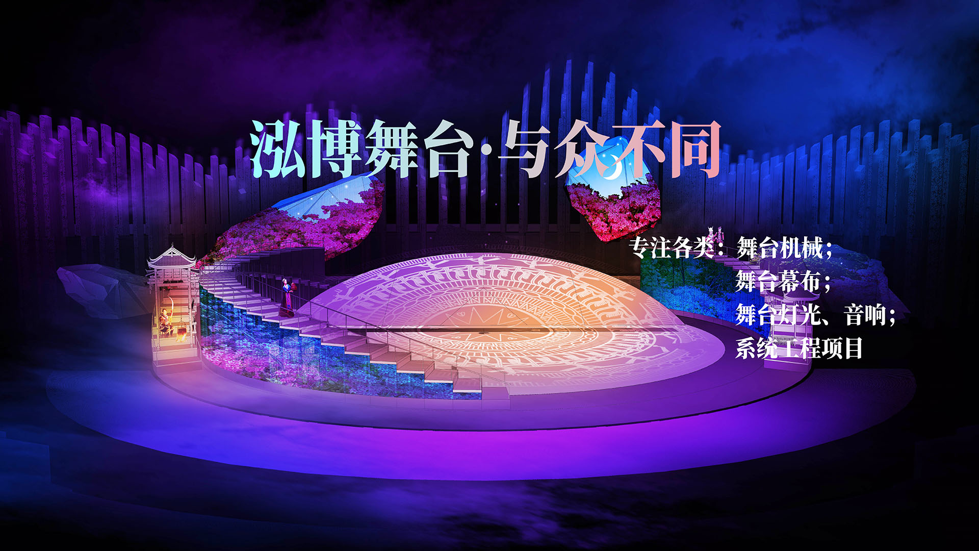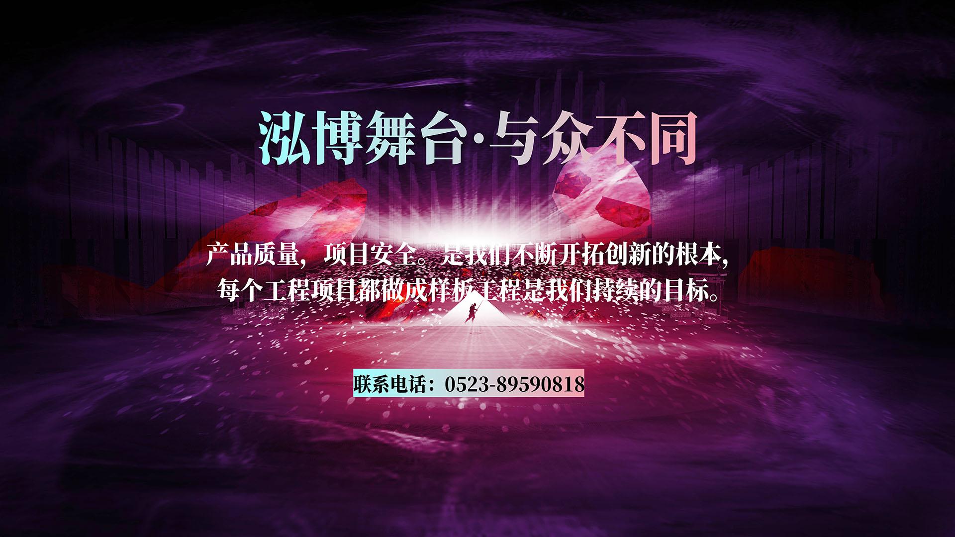 江蘇泓博舞臺(tái)設(shè)備科技有限公司  江蘇泓博舞臺(tái)設(shè)備科技有限公司坐落于美麗的揚(yáng)子江畔——泰州市。公司生產(chǎn)基地設(shè)在國(guó)家中藥養(yǎng)生小鎮(zhèn)——大泗,距離泰州高速出口大泗出口1.5公里,交通便捷。泓博公司是國(guó)內(nèi)較早從事舞臺(tái)機(jī)械設(shè)計(jì)制造安裝的專業(yè)公司。  泓博以發(fā)展文化產(chǎn)業(yè)為已任,多年來(lái)以求新務(wù)實(shí)的步伐走出一條技術(shù)創(chuàng)新、產(chǎn)品創(chuàng)新、管理創(chuàng)新、品牌創(chuàng)新的發(fā)展足跡,在企業(yè)轉(zhuǎn)型升級(jí)的道路上向設(shè)計(jì)研發(fā),生產(chǎn)制造、安裝調(diào)試及售后服務(wù)一條…